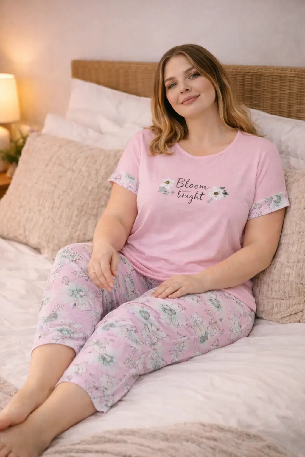 Büyük beden kadınlar için özel olarak tasarlanan bu pijama takımı; vücudu sarmadan dökümlü durur, hareket özgürlüğü sunar. Kısa kollu üst parçası ve esnek bel yapısına sahip altı sayesinde uyku, dinlenme ve ev giyimi için ideal bir tercihtir. Şık desenleriyle hem rahat hem de estetik bir görünüm sunar.