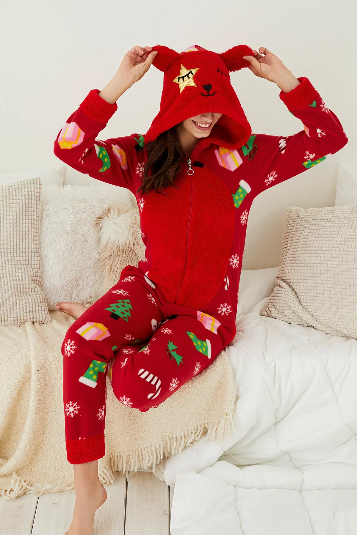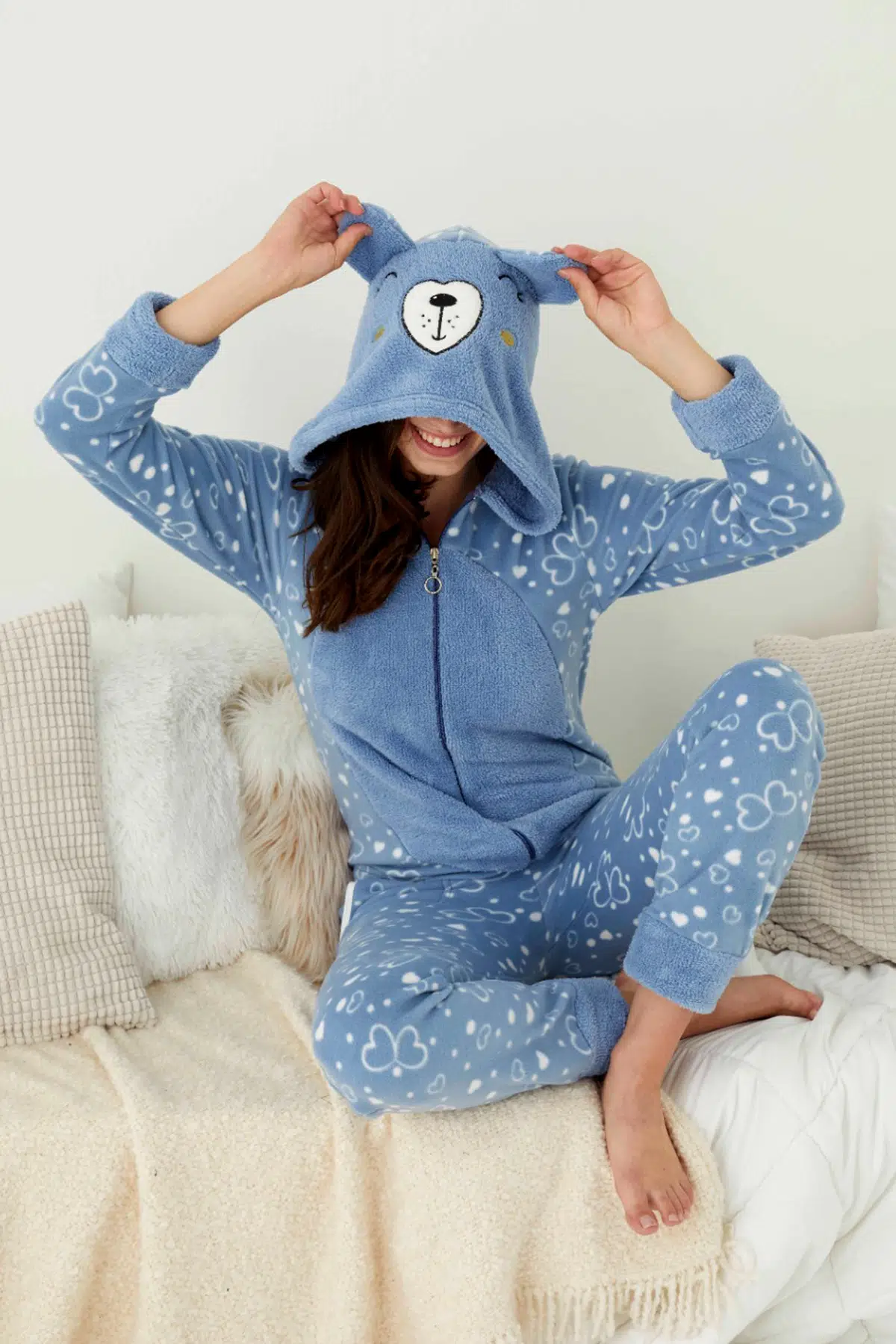 Kadın Uzun Kollu Kışlık Peluş Polar Tulum Pijama Dokusuna Hayran Kalacaksınız :)