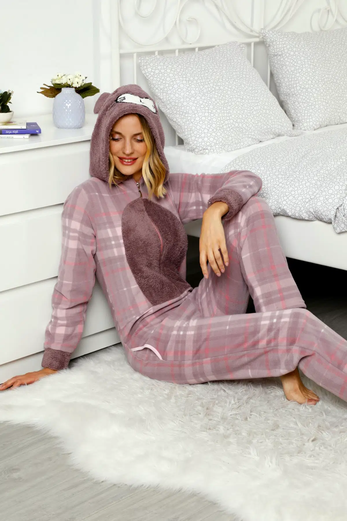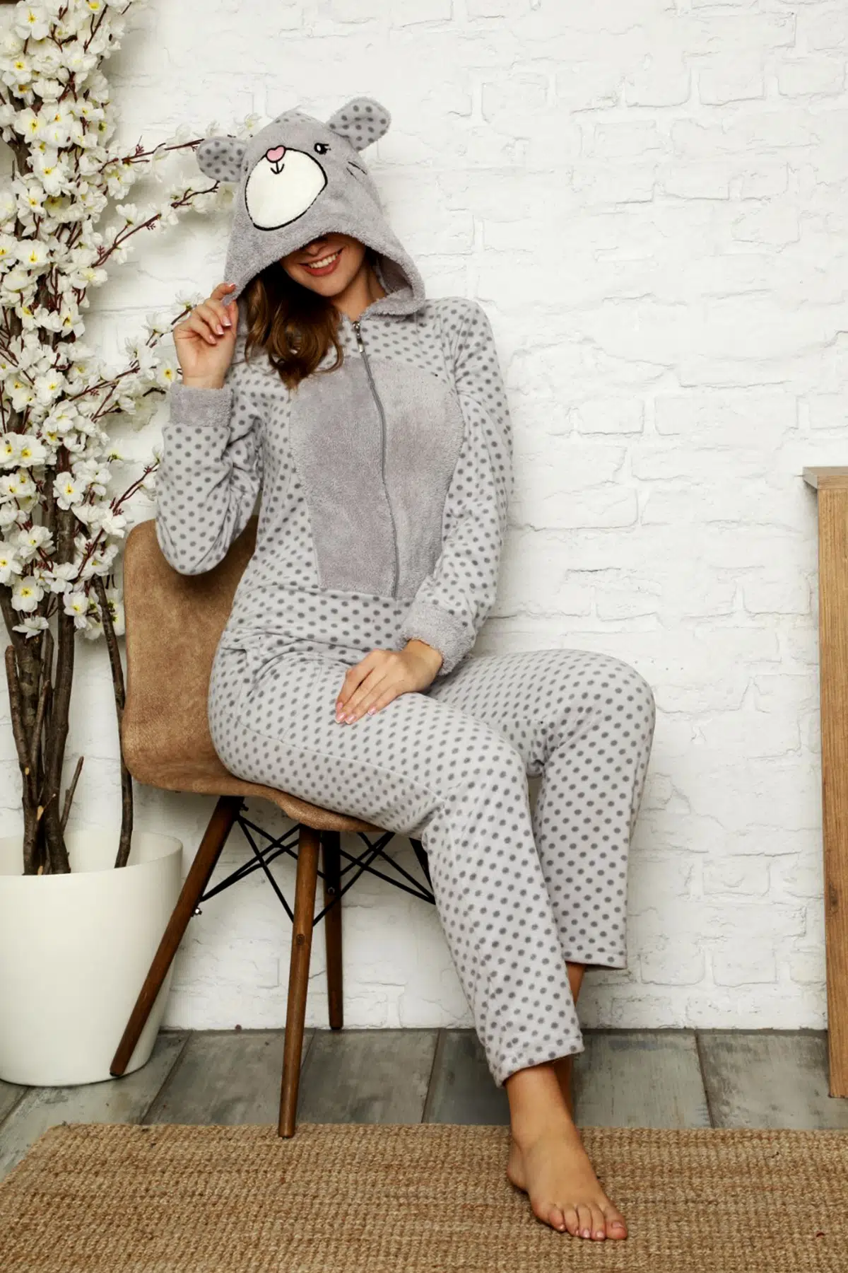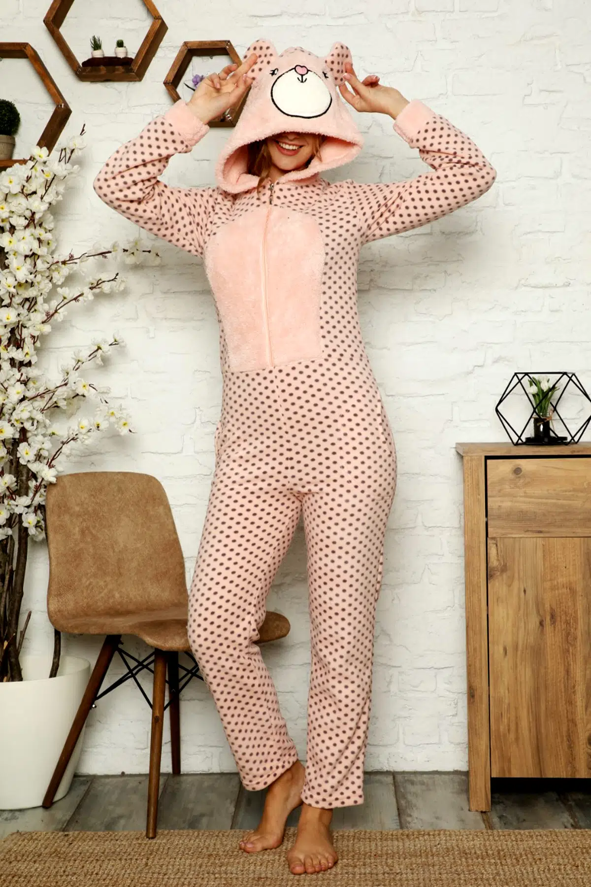 Kadın Uzun Kollu Kışlık Peluş Polar Tulum