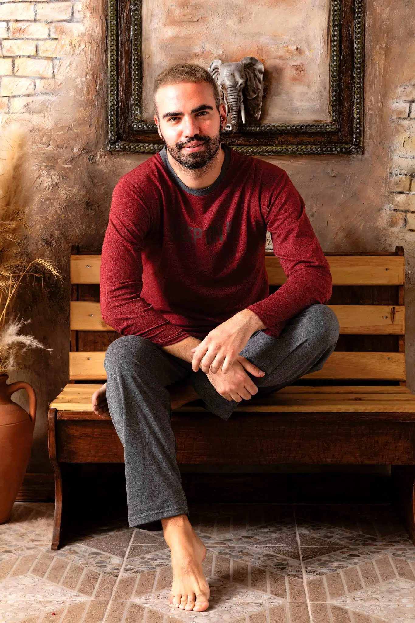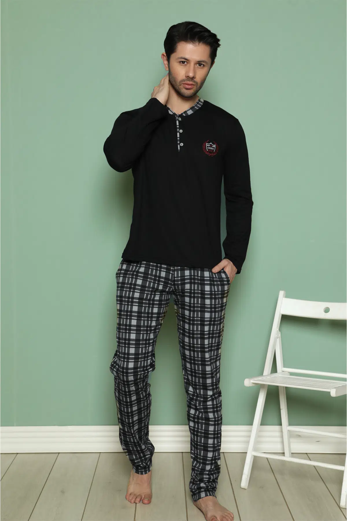 Mevsimlik Erkek Uzun Kollu Pamuk Penye Pijama Takımı