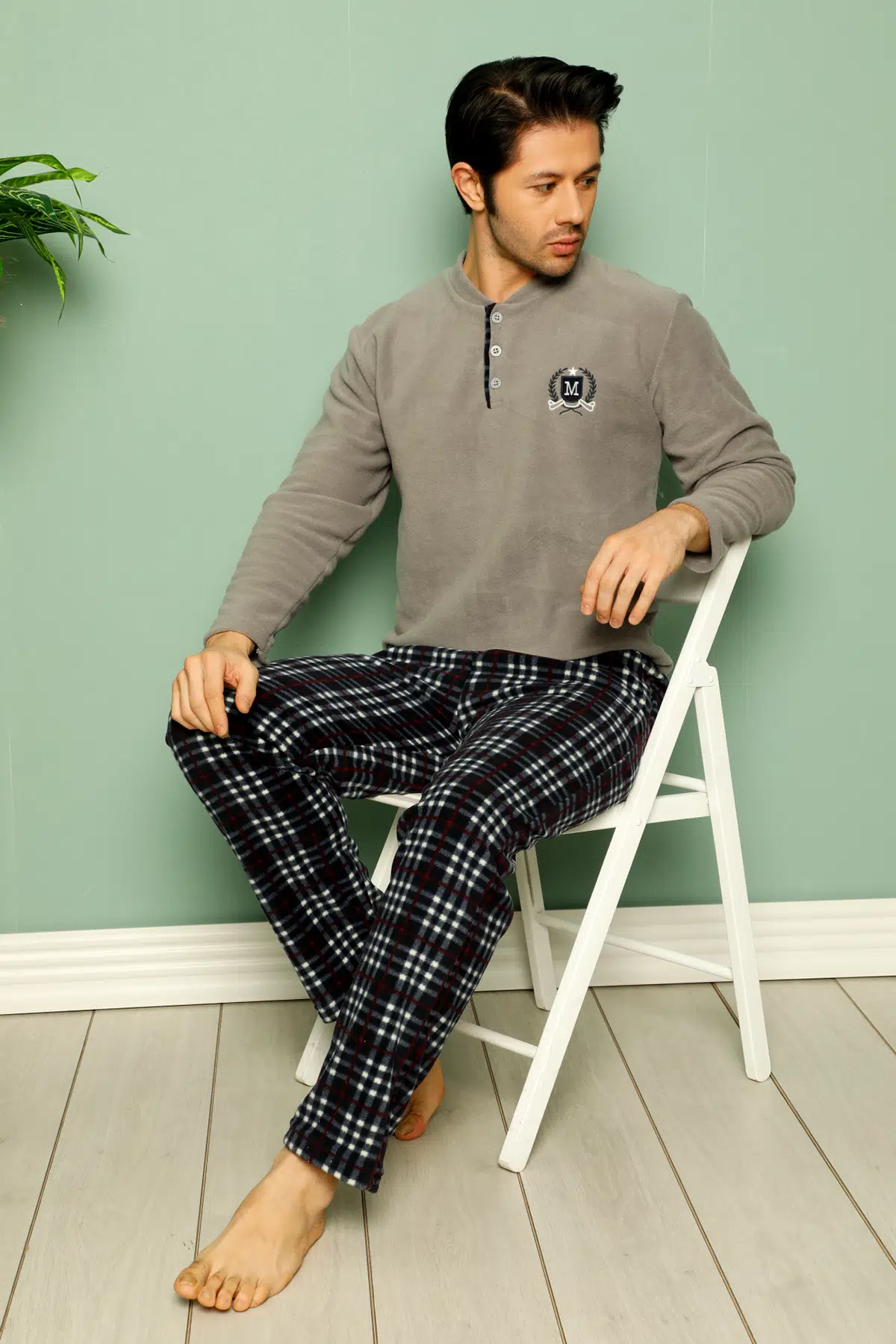 Erkek polar pijama takımı, uzun kollu bir üst giyim ve uyumlu alt pantolondan oluşur. Üst, klasik bir tasarıma sahip olup düğme detayları ile donatılmıştır, bu da giyip çıkarmayı son derece kolay hale getirirken şıklık katmaktadır. Alt, rahat bir uyum için elastik bir bel bandıyla tasarlanmıştır.