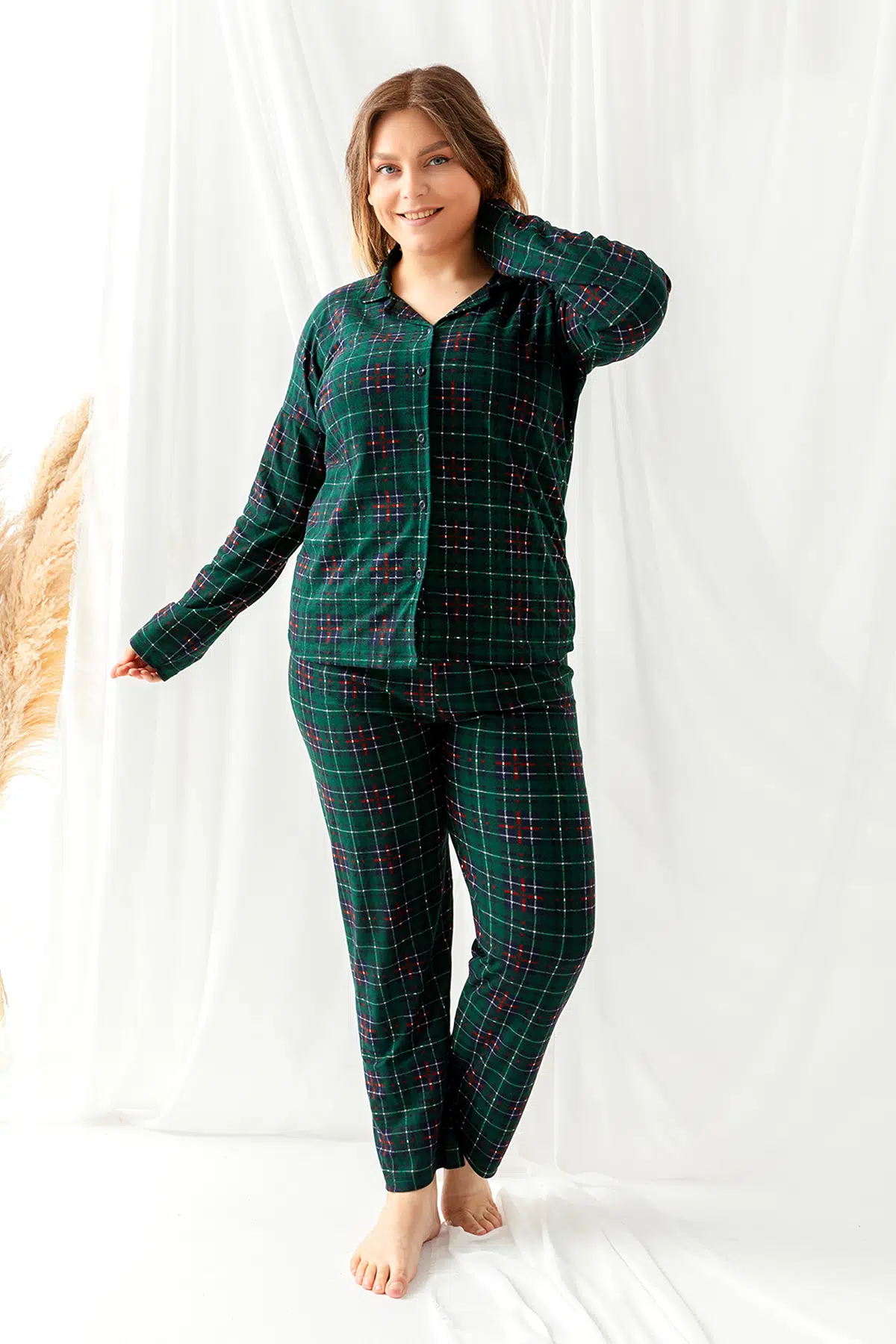 Kadın Uzun Kollu Büyük Beden Kışlık Düğmeli Süet Pijama Takımı