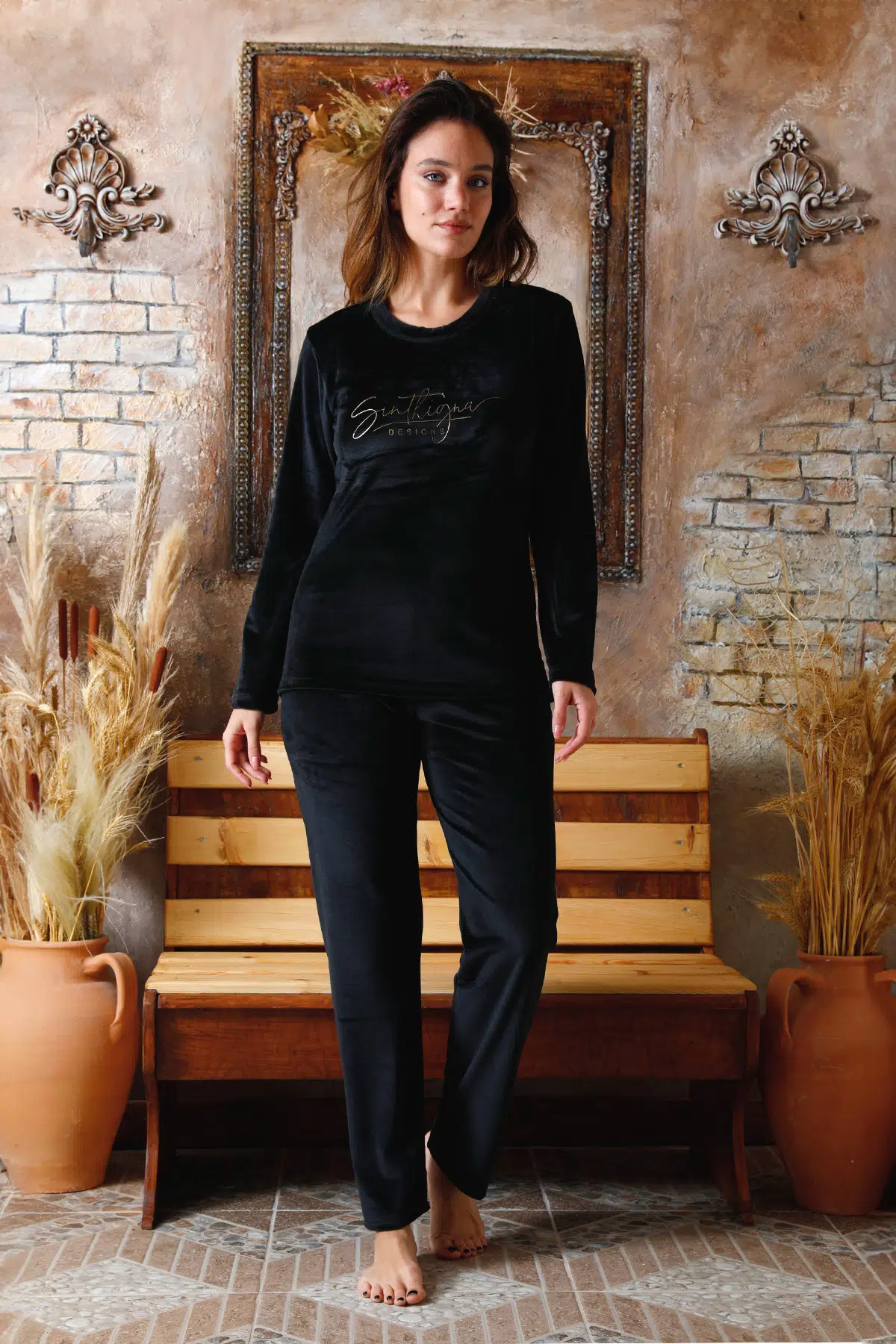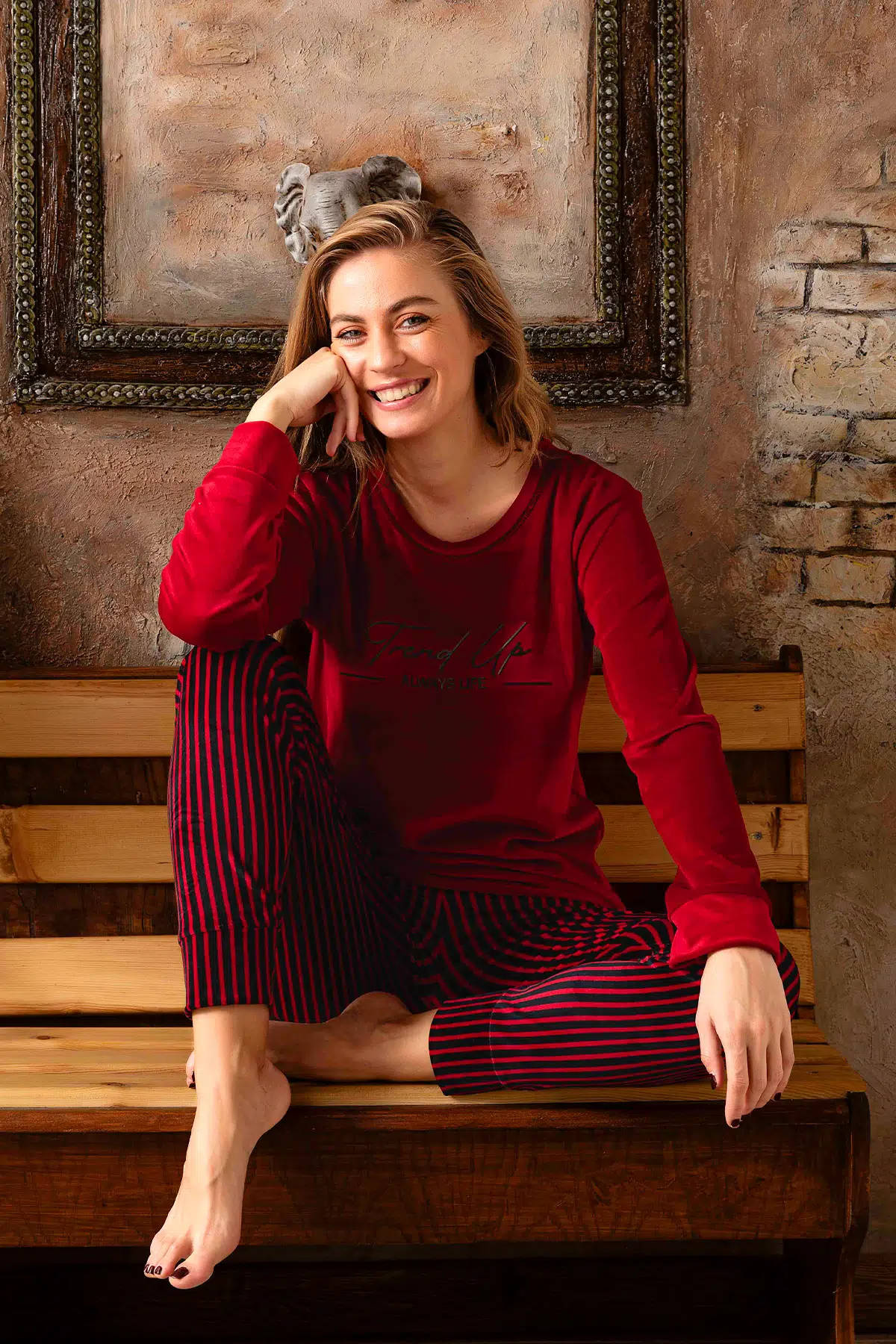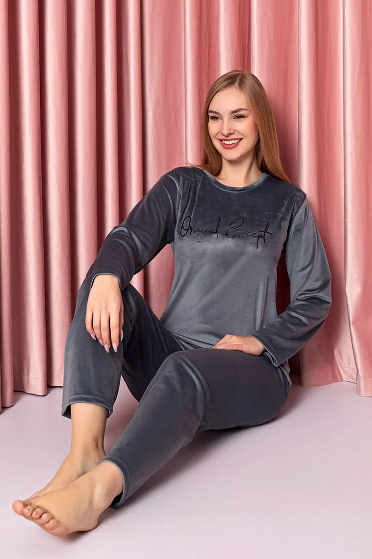 Kadın Uzun Kollu Kışlık Kadife Pijama Takımı