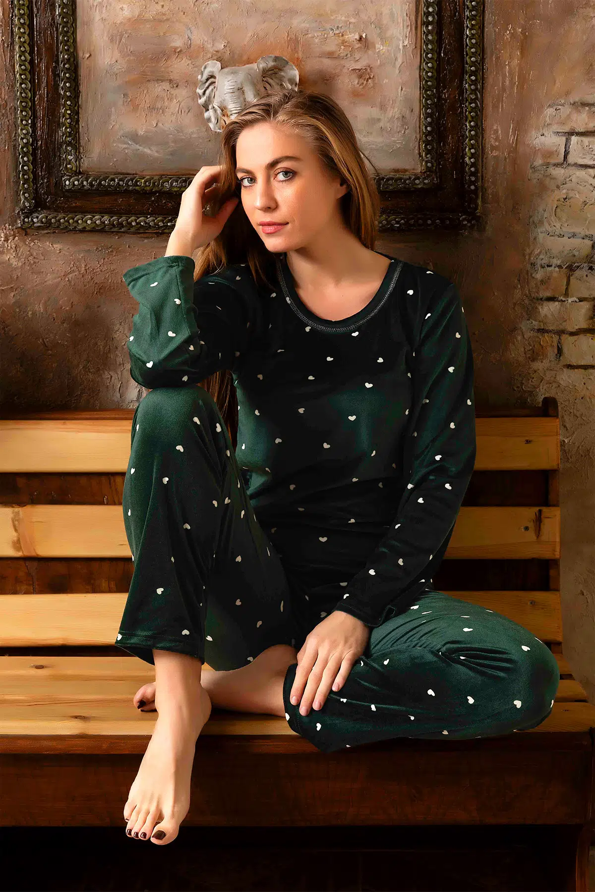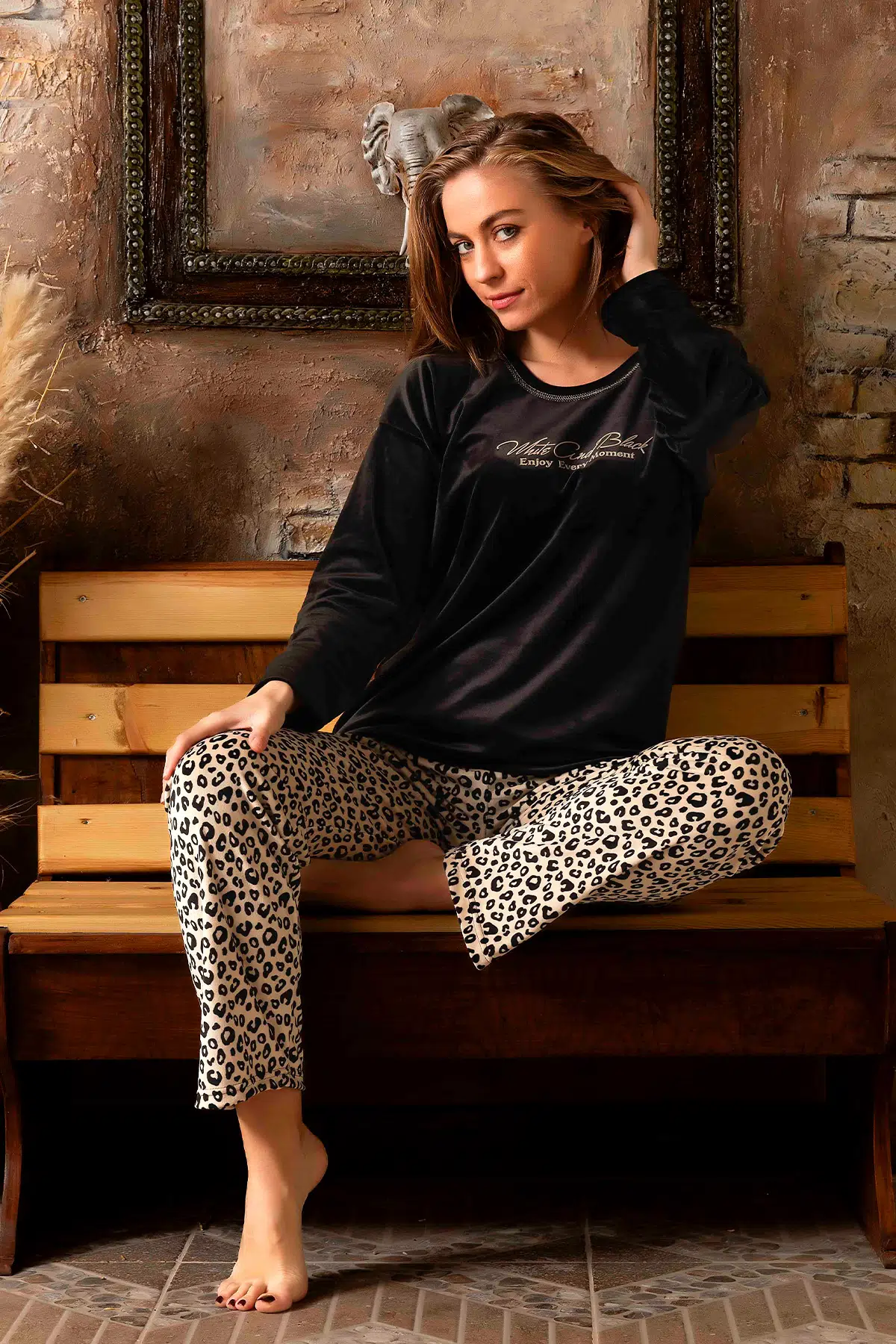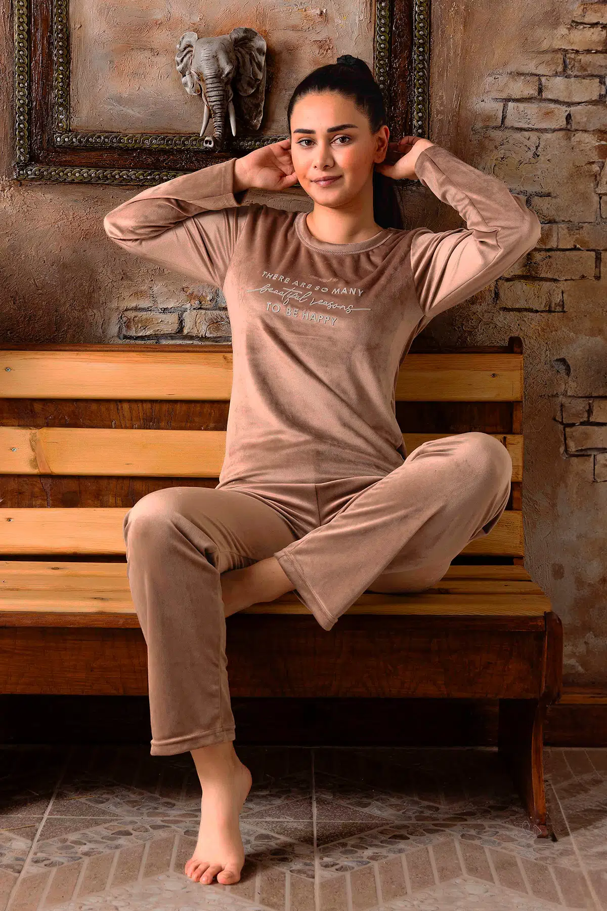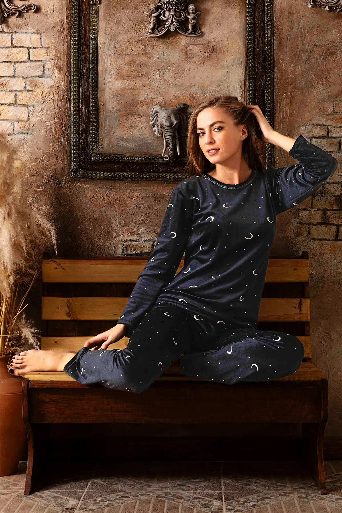 Kadın Uzun Kollu Kışlık Kadife Pijama Takımı