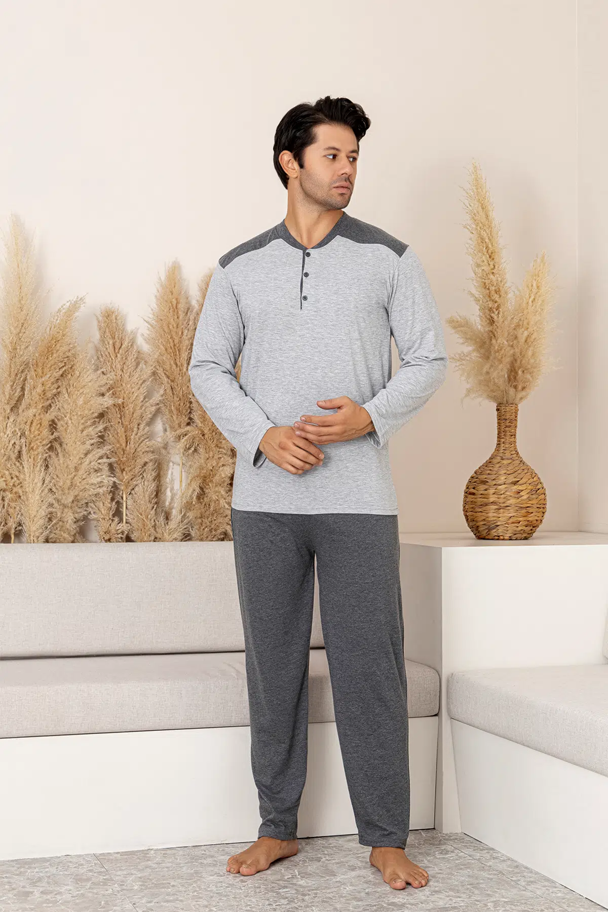 Mevsimlik Erkek Uzun Kollu Pamuk Penye Pijama Takımı