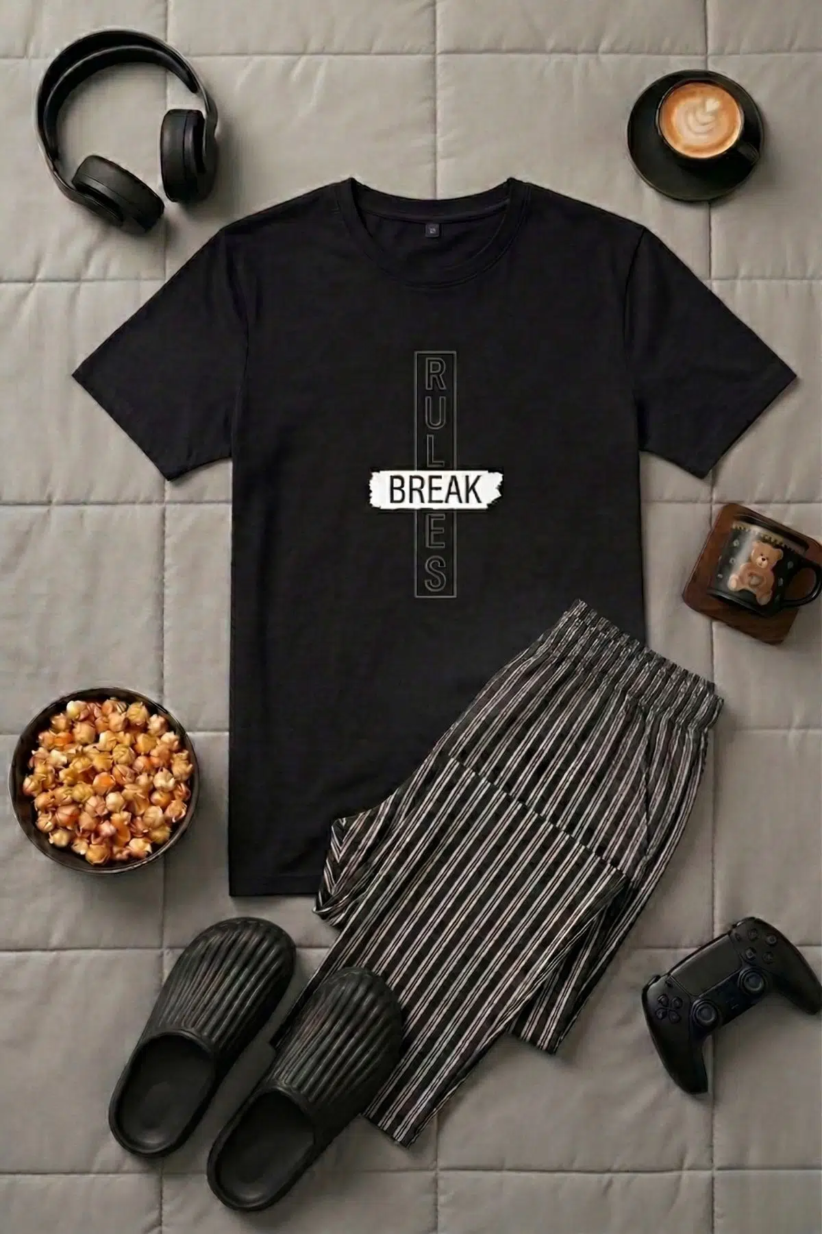 Bu özel seri pijama takımı, kaliteli %100 pamuk kumaşıyla üretilmiştir. Yaz aylarında serin ve konforlu bir uyku deneyimi sunar. Kısa kollu tasarımı ile sıcak yaz gecelerinde ferah bir his sağlarken, aynı zamanda şık ve modern görünümüyle de dikkat çeker.